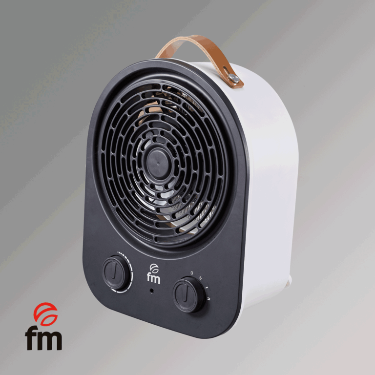 Doble potencia, ventilación-calefacción, temperatura regulable, sistema de seguridad antivuelco, termostato de seguridad y silencioso.